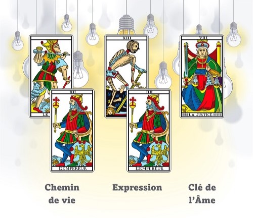Rien ne vous empêche d’associer les valeurs obtenues aux lames de tarot. Cela donnera une toute autre lecture mais qui n’est pas moins intéressante. On réduit dans ce cas les totaux obtenus entre 1 et 22, et non plus entre 1 et 9.