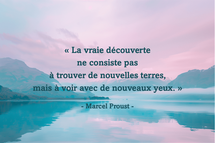« La vraie découverte ne consiste pas à trouver de nouvelles terres, mais à voir avec de nouveaux yeux. » Cette citation de Marcel Proust résonne profondément avec notre quête perpétuelle de sens, de bonheur et d’épanouissement. Trop souvent, nous avons tendance à chercher des réponses à l’extérieur de nous-mêmes, espérant que de nouveaux environnements, de nouvelles personnes ou de nouvelles expériences combleront ce sentiment de vide ou d’inconfort intérieur. Et si la vraie découverte consistait, justement, à changer notre regard plutôt que notre décor ?